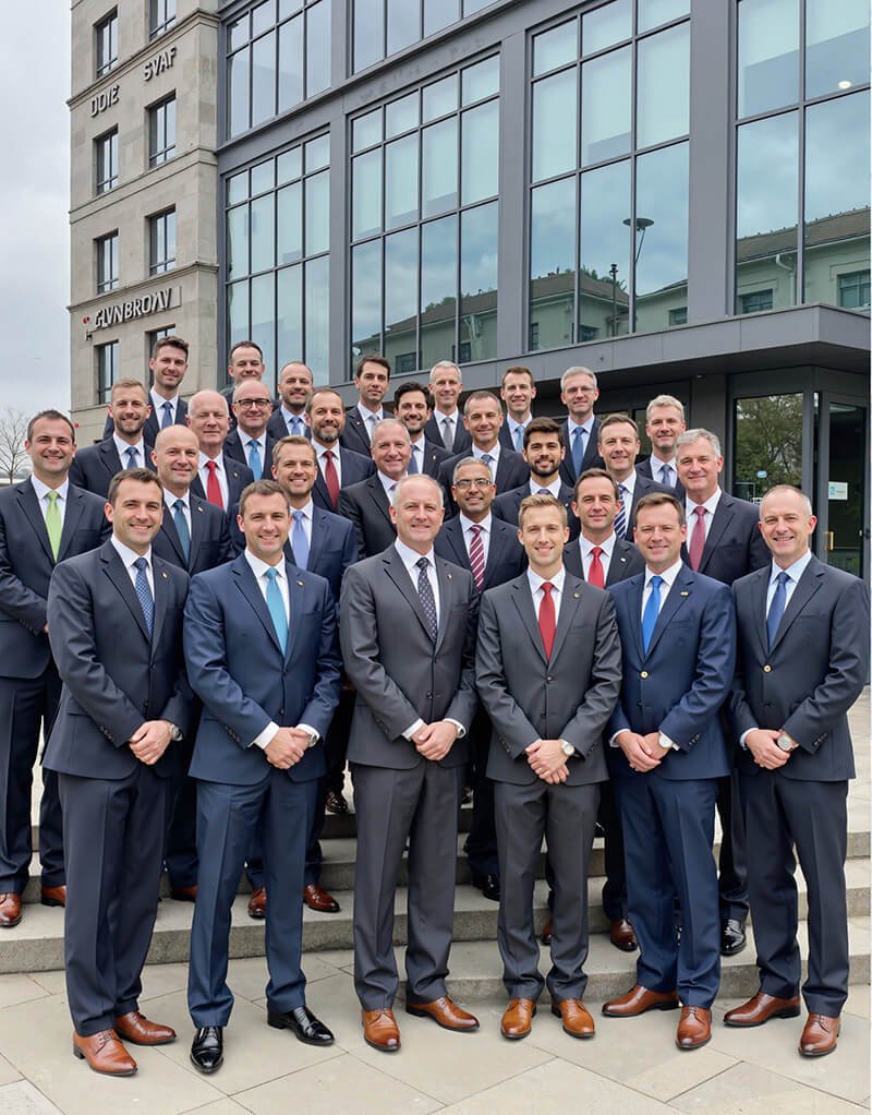 Crafted bespoke business suits for a multinational corporation’s executive team, emphasizing sophistication, perfect fit, and premium materials.