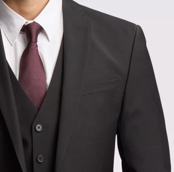 Introducing our Performance Black Panama Wool Blend Suit Jacket, a sophisticated and versatile foundation for your custom apparel programs. Crafted from a premium blend of 88% wool, 8% polyester, and 4% elastane, this jacket offers a perfect balance of luxury, functionality, and comfort. Designed with a modern slim fit, it ensures a sharp silhouette suitable for formal and business occasions.