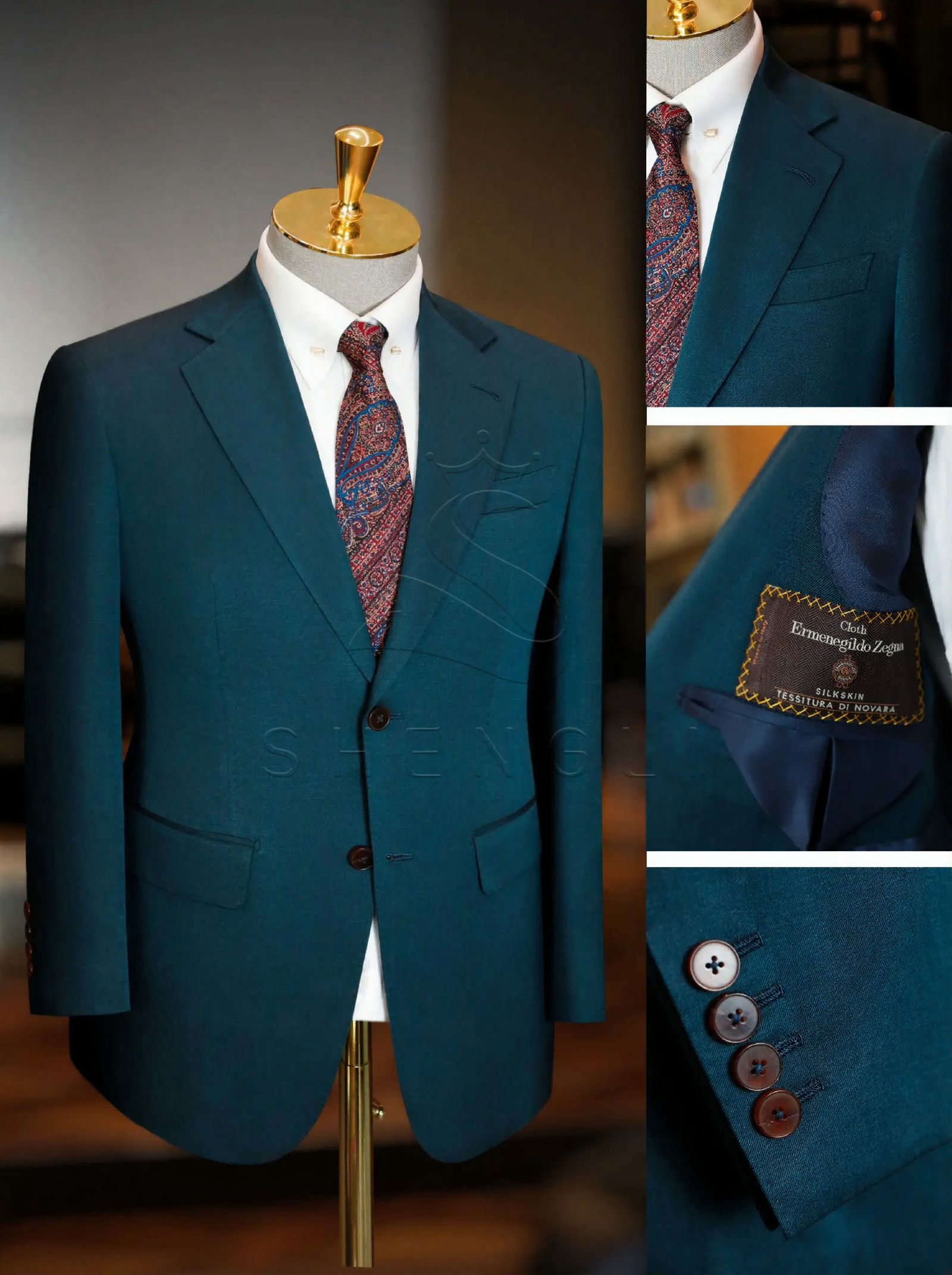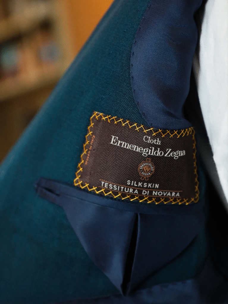 Eco-Luxury Silk Suit in Zegna Teal | Bespoke Business Attire | Sustainable Elegance