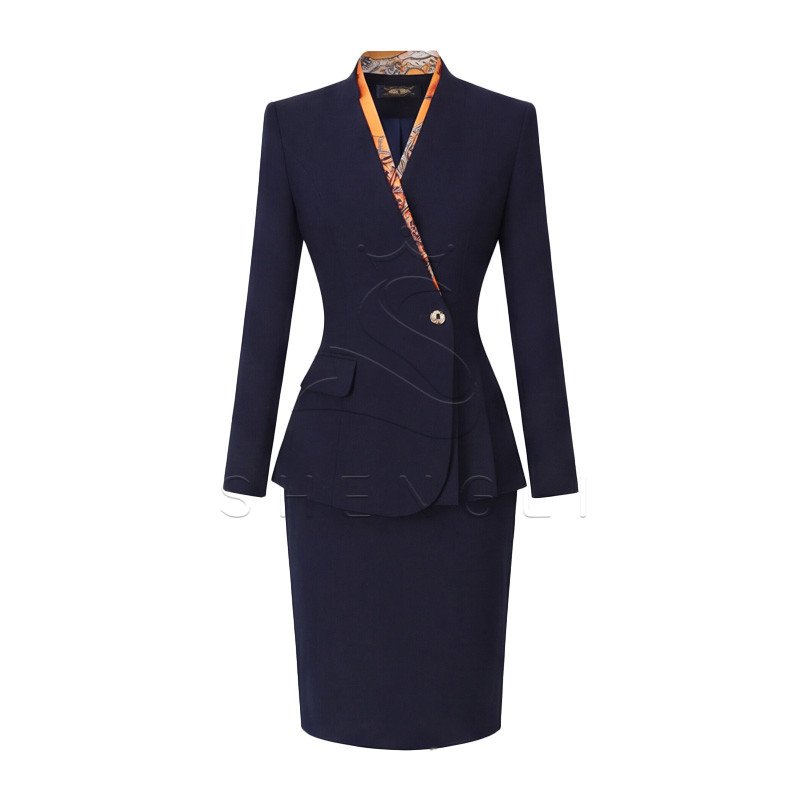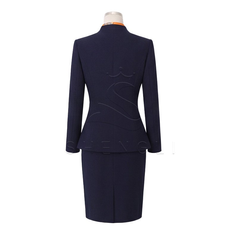 women’s business suit, navy blue office uniform, professional blazer skirt set, ladies formal workwear, corporate suit for women, tailored business outfit, elegant office suit, flight attendant style uniform, women’s professional attire