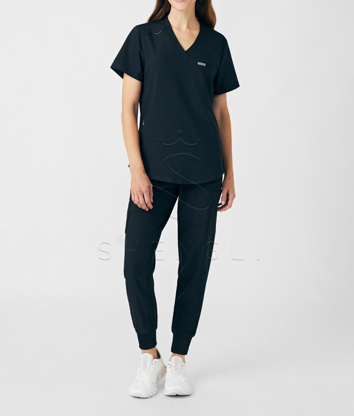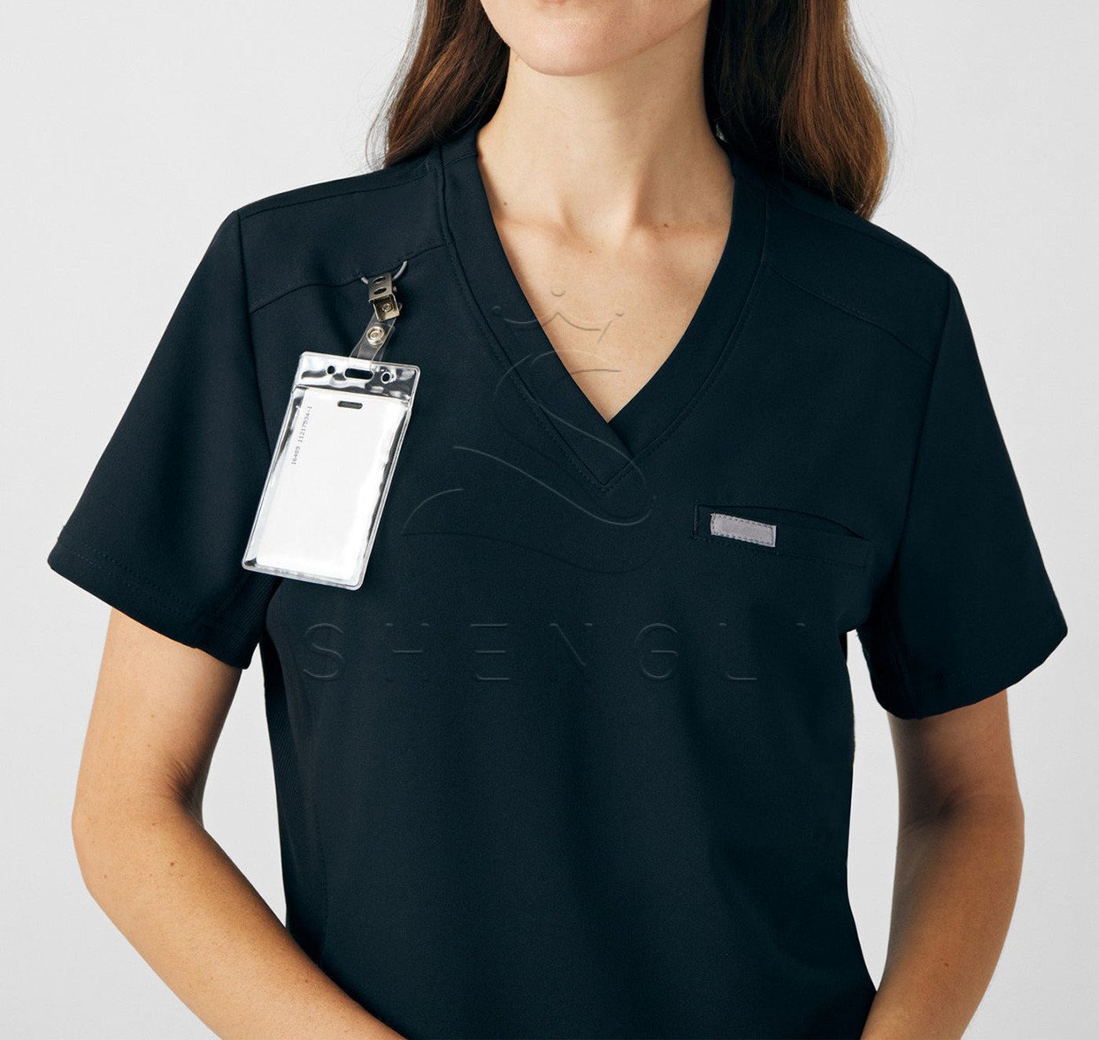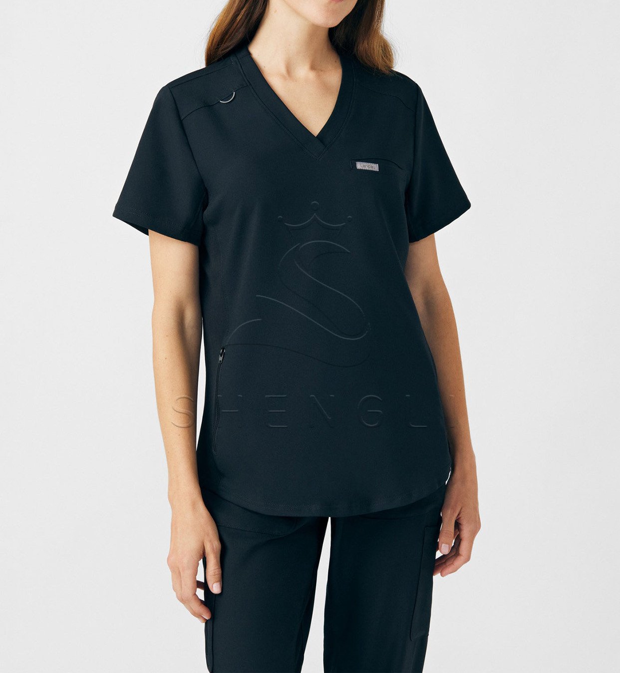 Engineered specifically for healthcare professionals, this navy blue v-neck top combines clinical functionality with exceptional comfort. Featuring advanced moisture-wicking technology and four-way stretch fabric, this tailored top maintains a professional appearance while supporting dynamic movement throughout demanding shifts. The thoughtful design incorporates multiple storage solutions and breathable construction for all-day wearability in fast-paced medical environments.