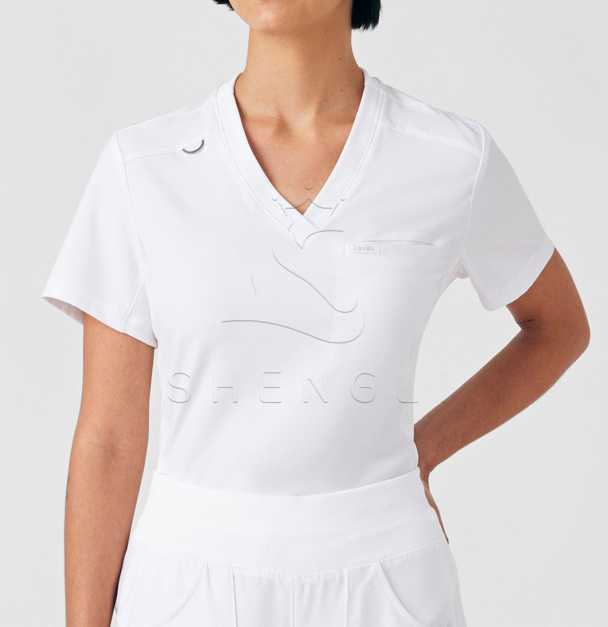 Engineered for the demands of modern healthcare environments, this women’s V-neck tunic combines clinical functionality with contemporary style. Crafted from advanced four-way stretch fabric with moisture-wicking properties, this top provides healthcare professionals with exceptional comfort and freedom of movement throughout their shifts. The sophisticated white color maintains a professional appearance while practical features enhance daily workflow.