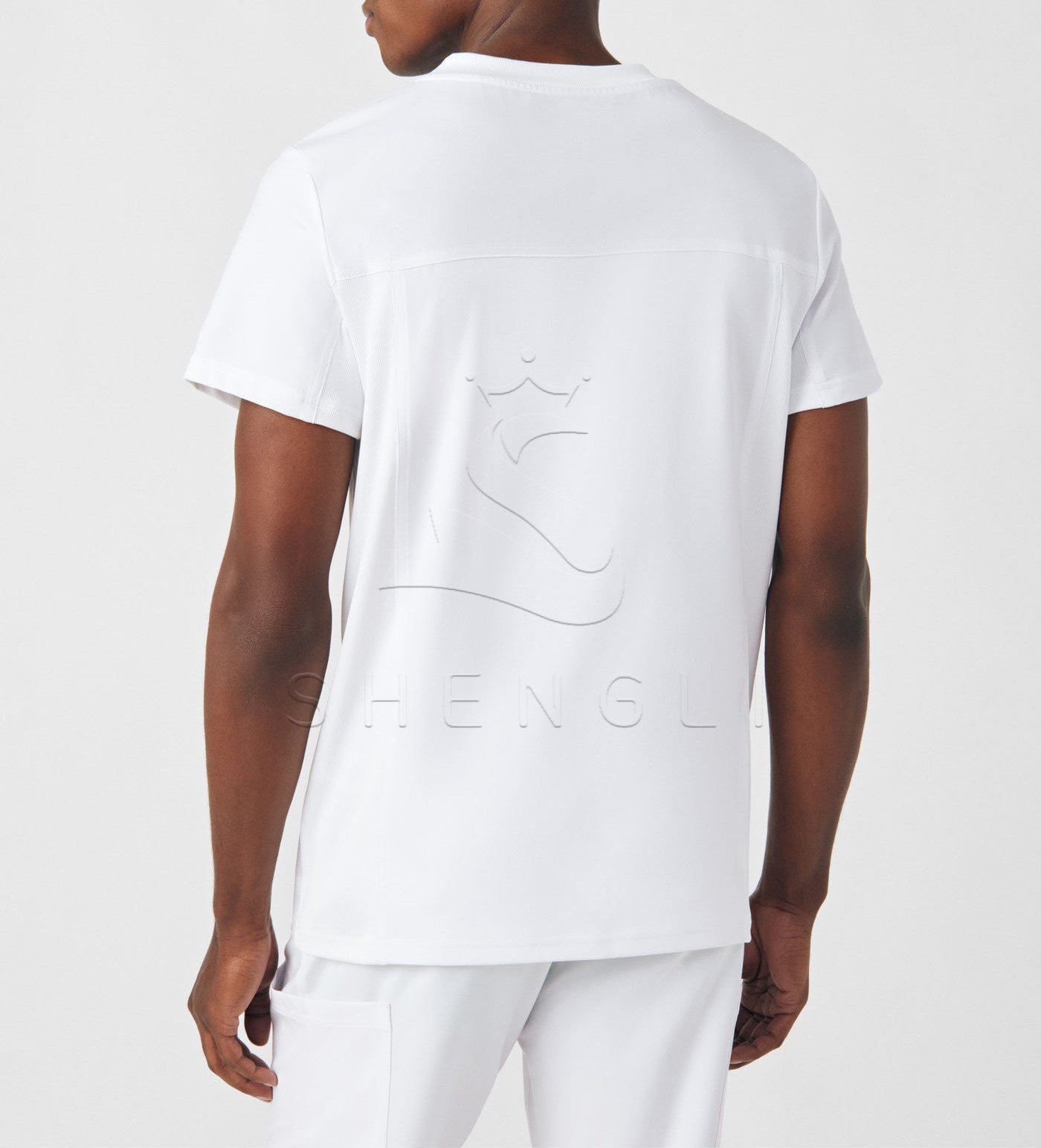 Engineered for healthcare professionals who demand both style and functionality, this advanced V-neck scrub top combines innovative design with practical features. The contemporary fit with strategic stretch panels ensures freedom of movement during long shifts while maintaining a professional appearance. Perfect for hospitals, clinics, and medical facilities seeking comfortable, functional staff uniforms.