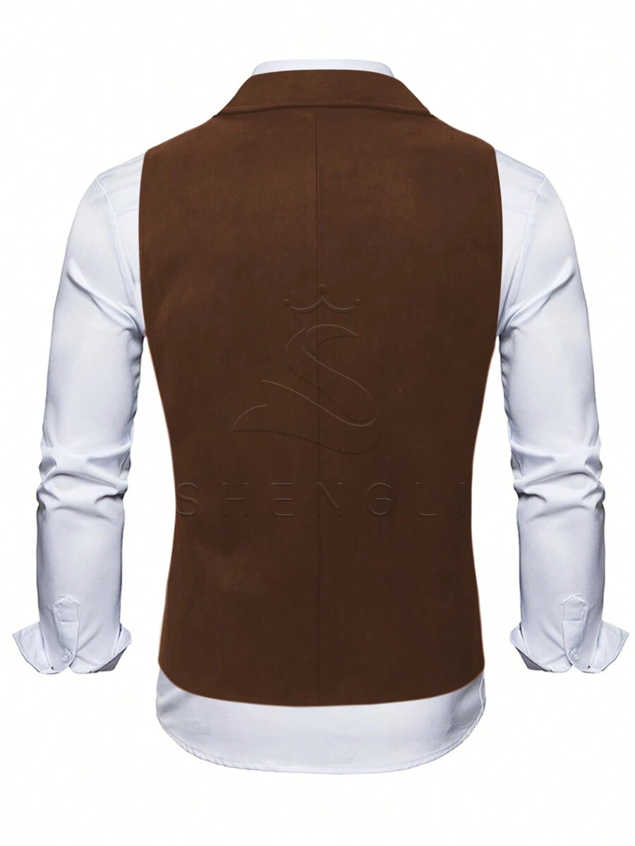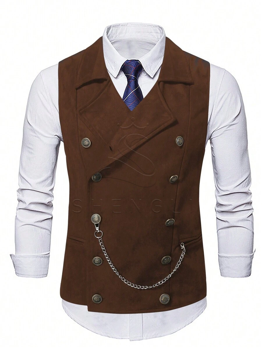 Men’s Vintage Double-Breasted Suede Waistcoat with Chain