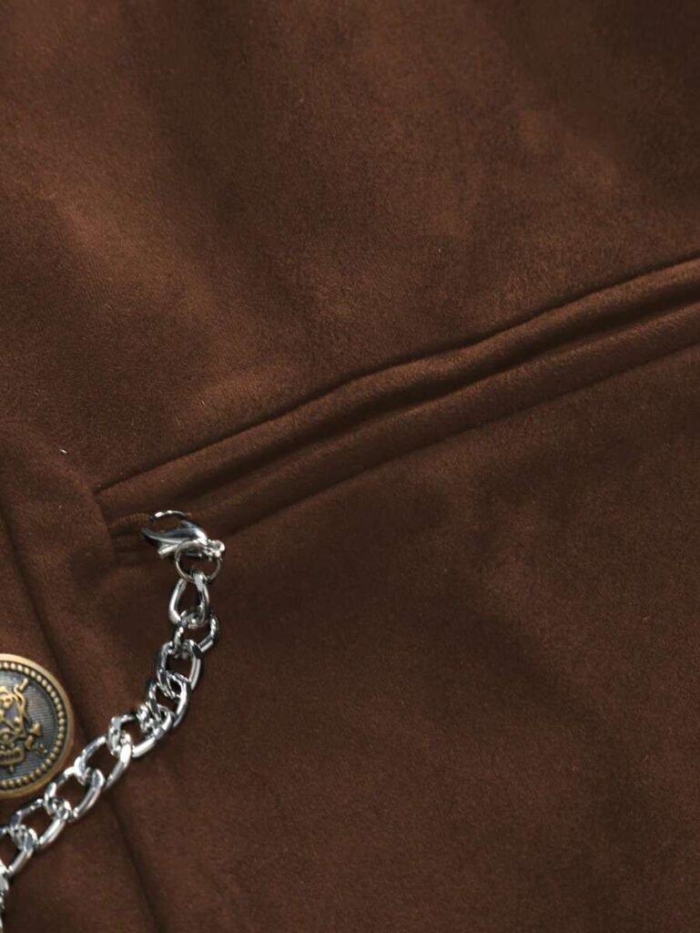 | Features | Decorative chain detail, notched lapel, side pockets, inner lining |