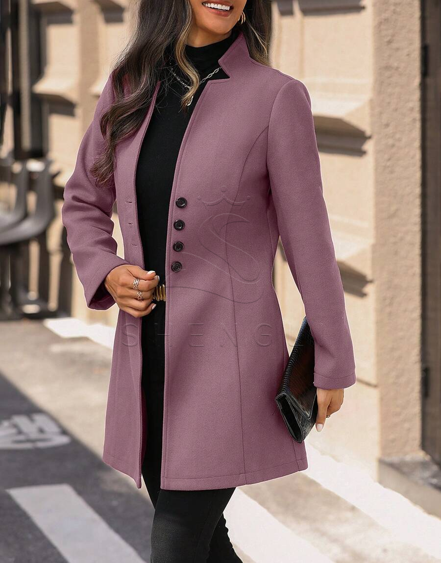 women’s casual coat, solid color single-breasted coat, fall winter women’s outerwear, ladies long coat, casual winter coat, women’s solid coat, single-breasted winter jacket